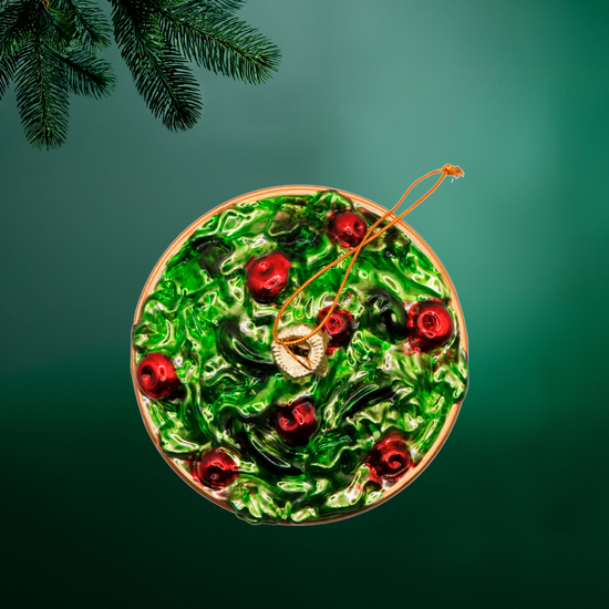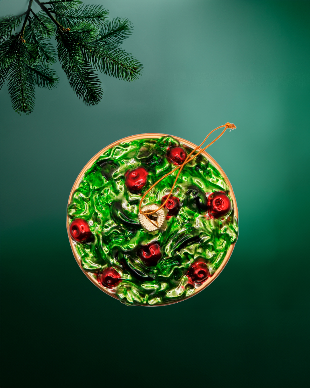 Ja du hörde rätt, vi har skapat en ikonisk julkula av vår ikoniska skål som bara finns i begränsad upplaga. Handmålad och blåst i glas.